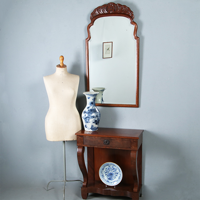 Gedraaide Lage zuil of lampetafel op kloeke vierkante voet Klein kloek zuiltje dat met plezier en gemak een prachtige brons zal presenteren… Gedraaide notenhouten zuil met een rond bovenblad met kleine opstaande rand, de vierkante voet met kleine slofpootjes. Herkomst Holland periode 1900 – 1920. Solide zuil in goede staat een klein sleets hoekje op de voet, verder alleen normale lichte gebruikssporen mooie oude kleur. Afmetingen: diameter blad 0,23 m. / voet 0,30 X 0,30 m. – Hoogte 0,74 m. Info ...