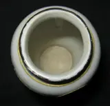 Op 2 plaatsen is craquelé zichtbaar in de glazuurlaag.