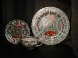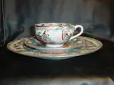 Ontbijtset bestaand uit ontbijtbord en theekop (theeschaal) van handbeschilderd chinees porcelein.