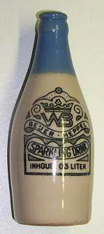 hallo, ik bas billet ben op zoek naar stenen limonadekruikjes, deze zijn altijd te herkennen aan een kroonkurksluiting. Verder zijn ze voorzien van een geglazuurde en gekleurde bovenkant. Verder staat er meestal Grapefruit ,Sparkling drink of Vruchtenlimonade op vermeld of eventueel de onderstaande firmanamen. Dubbele exemplaren zijn ook welkom.