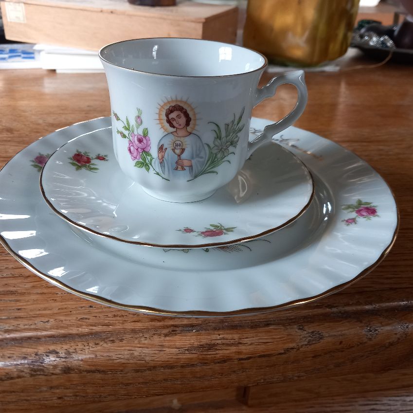Communie dejeuner, ontbijtsetje- Kop en schotel-ontbijtbordje- puntgaafDOE EEN BOD, vanaf 15,- . Ga ik akkoord met je bod dan krijg je bericht