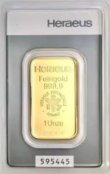 1 Troy Ounce - Goud .999 - Heraeus - Verzegeld en met certificaat