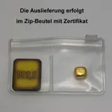 Kleine 10 g fijne goudbaren als gegoten investeringsbaren zijn een zeldzaamheid, omdat ze in deze maat bijna uitsluitend als reliëfgoudbaren worden aangeboden.