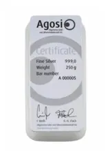 250 gram - Zilver .999 - AGOSI Deutschland - Verzegeld en met certificaat