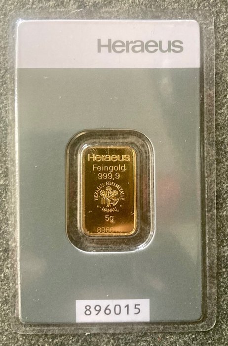 5 gram - Goud .999 - Heraeus - Verzegeld en met certificaat