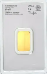 5 gram - Goud .999 - Heraeus - Verzegeld en met certificaat