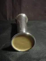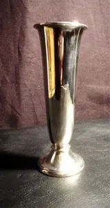 Het vaasje loopt bij niet poetsen zwart aan, waaruit afgeleid wordt dat het verzilverd is, iets dat door wijlen de bezitter ook altijd werd gezegd.