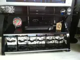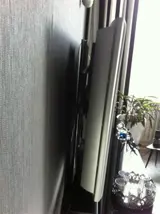 met daar bij een zwarte glazen tv meubel de tv hangt daar in samen voor de prijs van 300 euro.