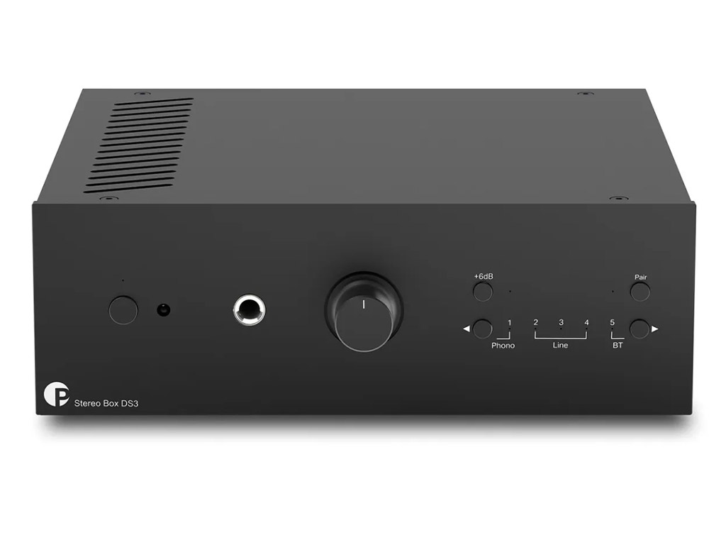 Naast drie lijningangen (met vergulde tulpstekkeraansluitingen) bezit de Pro-Ject Stereo Box DS3 ook nog een luxe ingebouwde phono-ingang. Deze is geschikt voor zowel MM- als MC-elementen. De gain is resp. 40 dB en 60 dB, de aansluitweerstand 47kOhm (MM) en 100 Ohm (MC).