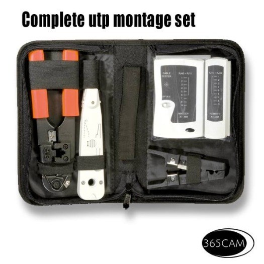Wanneer u zelfs utp camerakabel gaat aanleggen, mag deze utp montageset niet ontbreken. U trekt eerst zelf de utp kabel door bijvoorbeeld een leiding of goot en vervolgens krimt u zelf de utp stekker eraan.
