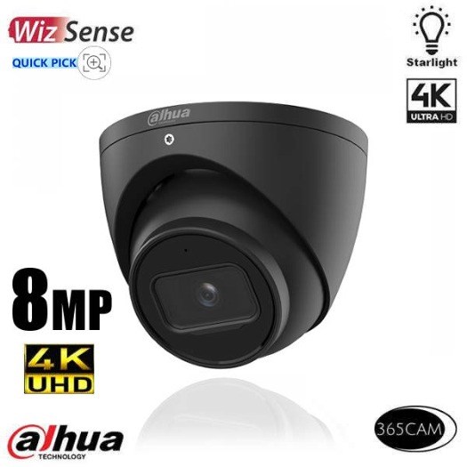 Een prachtige zwarte 4K buitencamera van Dahua. Model HDW3841EMP-S-S2-B