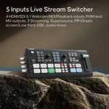 Met 2 x 3G-SDI- en 2 x HDMI-ingangen kun je probleemloos schakelen tussen verschillende camera's of videobronnen. De switcher ondersteunt resoluties tot 1080p60 en beschikt over professionele uitgangen voor programma-feed, multiview en audio monitoring.