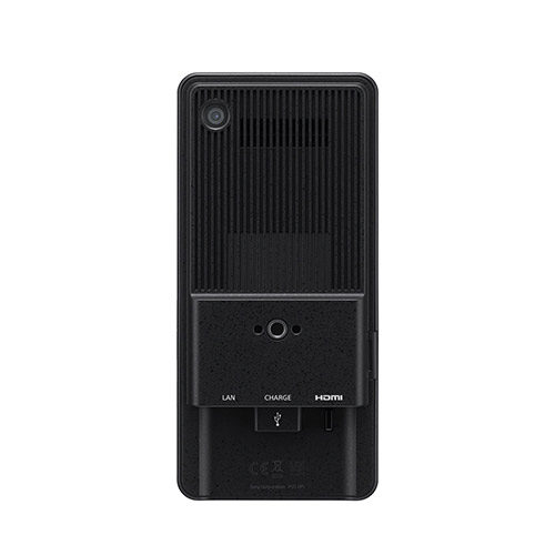 De Sony PDT-FP1 is voorzien van een 1/4" statiefschroefgat aan de achterkant voor montage op een statief of camera, en is voorzien van een riemgat voor effectief kabelbeheer.