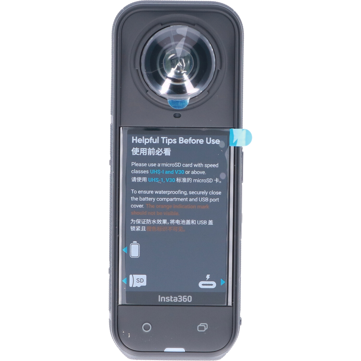 Deze camera is ontworpen met duurzaamheid in gedachten. De lenzen zijn gemaakt van gehard optisch gorillaglas en eenvoudig zelf te vervangen, zodat je bij schade niet direct een nieuwe camera nodig hebt. Dankzij de langere batterijduur van 185 minuten en ondersteuning voor PD-snelladen tot 80% in 20 minuten, ben je altijd klaar om te filmen. De verbeterde waterbestendigheid tot 15 meter maakt de X5 bovendien geschikt voor gebruik in regen, sneeuw of onder water.