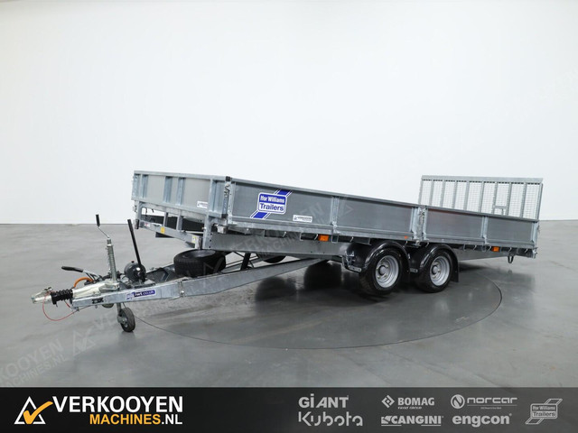 Kantelbare machinetransporter / multi-transporter. Bakmaat van 477x225cm MTM 3500kg De voordelen van een platformtrailer met daarop een kippend platform voor gemakkelijk laden, dit is de Ifor-Williams CT167 Machinetransporter tandemas Standaard voorzien van: Zeer sterk chassis met goede bodemondersteuning; Fijn weggedrag zowel met als zonder machine; Parabolisch veersysteem, kromme assen vrijwel uitgesloten; Stevige oprijklep met gasveerondersteuning; Sterk neuswiel geïntegreerd in oplooprem; Koppeling met antidiefstalslot; Extra zijverlichting schadevrij gemonteerd; Stevige betonplexvloer van 21mm dik met antislip laag; Ruim voldoende touwhaken gelast aan kantbalk; Reservewiel; Dubbele kiepcilinder, kromtrekkend bovenchassis is verleden tijd; Getoonde bordenset en lange oprijklep.