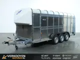 De allernieuwste langere TA510 16'x6' Veetrailer Binnenafmetingen van: 497 x 178 x 182cm (LxBxH) Zeer robuuste 3-asser veetrailer bladgeveerd! Deze trailer is voorzien van de volgende opties: Tussenverdeling Witte kunststof windvanger voorop Rail voor ventilatieluiken boven Rail voor ventilatieluiken onder Standaard voorzien van; - Balk assen met parabolische bladveren - Aluminium bodem + Aluminium opbouw