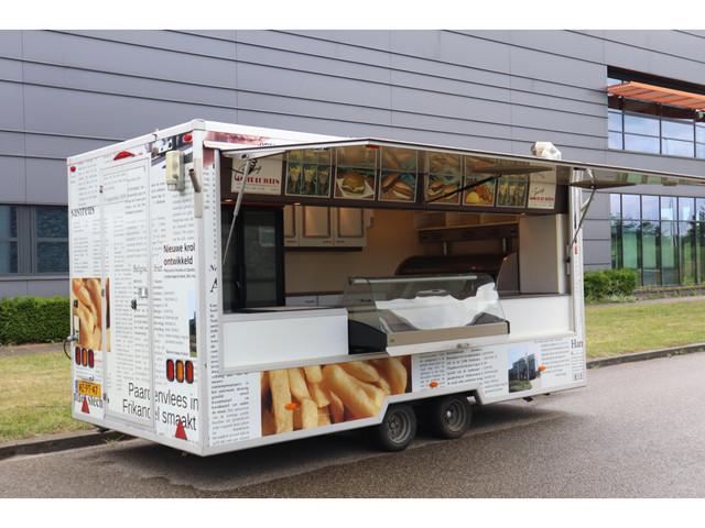 Ben je op zoek naar een complete snackwagen om meteen aan de slag te gaan? Deze ruime snackwagen staat te koop. Op 4,5 meter is alles te vinden wat gewenst is voor de verkoop van patat en snacks.