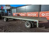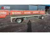 Platte wagen, voor en achter verlengd. Uitgerust met trekoog (40 mm).