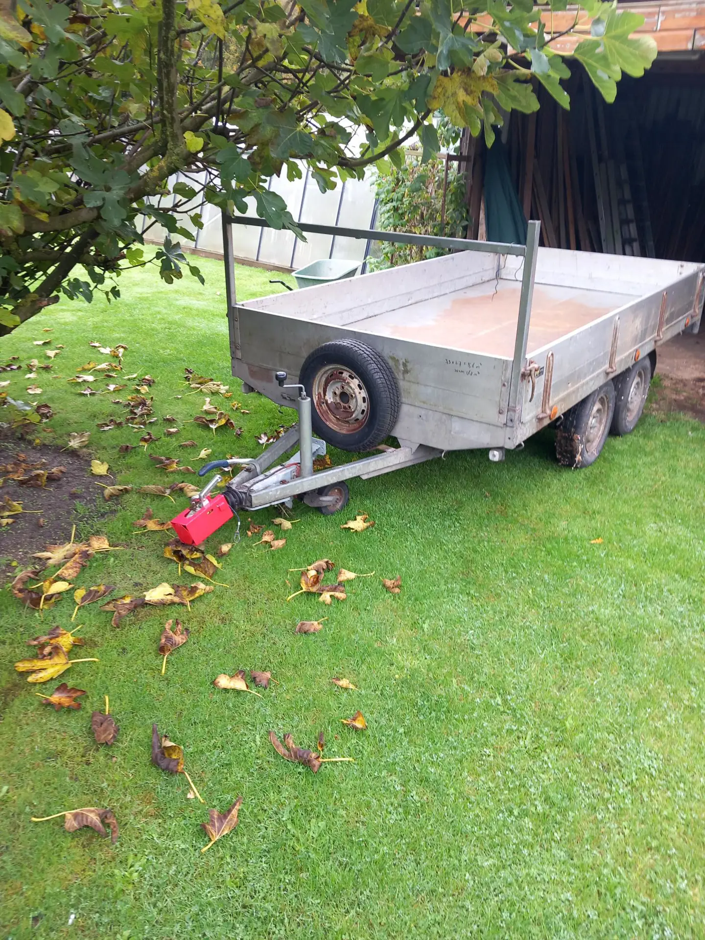 Te koop. Geremde plateauwagen.Gereviseerd en nagezien, goed onderhouden
