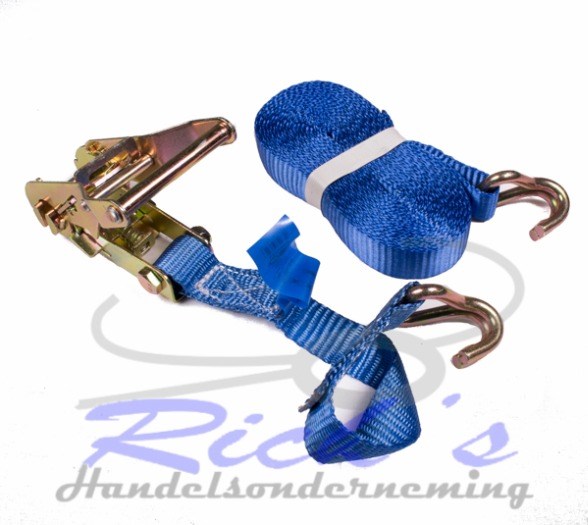 5 meter lange sjorband met ratelmechanisme en aan beide zijden een haak