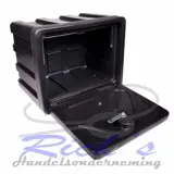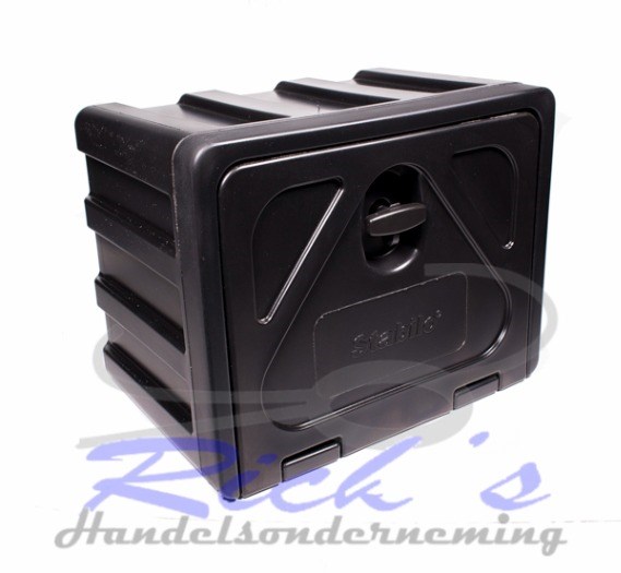 Kunststof opbergkist/gereedschapkist voor het droog opbergen van o. a aanhangernetten, sjorbanden en andere losse hulpmaterialen.