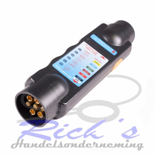 Met behulp van deze stekkertester kunt u van alle 7 polige aanhangwagens en caravans de stekker testen.