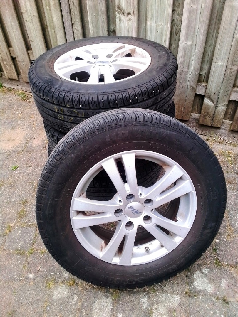 Set van 4 lichtmetalen velgen met winterbanden. Geschikt voor een Mitsubishi ASX. Bandenmaat: 215/65 R16. Velgmaat: 6.5Jx16H2 ET45. Steekmaat: 5x114.3. Naafdiameter: 67.1. Ook geschikt voor o.a. Hyundai, Kia, Mazda (zie steekmaat.nl).