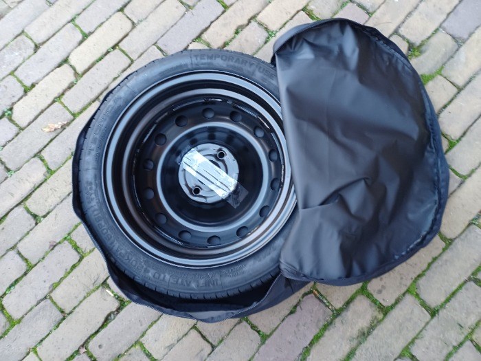 nieuw reservewiel ( thuiskomer) in opberghoes.