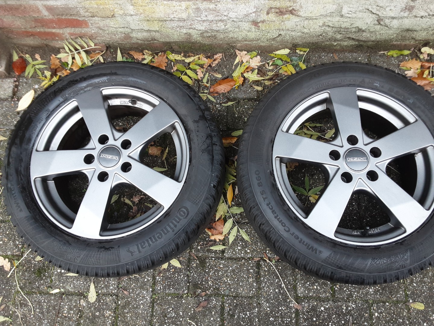 Winterwielen, onberispelijke set van 4 Continental winterbanden en lichtmetalen Dezent velgen. De velgen zijn zonder beschadigingen, 6.5/16, steek 5 x 112, et 40. De banden zijn premium: Continental Wintercontact TS 860, 5 à 6 mm profiel, voor nog meerdere winters rijplezier. Maat 205/55/16, 91H. Alles mooi. Gebruikt onder Seat Leon, maar zullen ook passen op andere VAG-modellen. Af te halen Eindhoven-Noord.