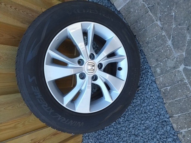 Vier originele Honda Alu velgen incl wielbouten + Vredestein Xtreme S winterbanden in goede staat 215/60 R16 99H - Pasmaat 6.5 x 16.5 x 114.3 ET 45 Asgat 64.1