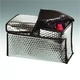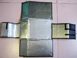 .Materiaal: aluminium bubbeltjes doek. Zowel alimunium als lucht zijn goede isolatoren.