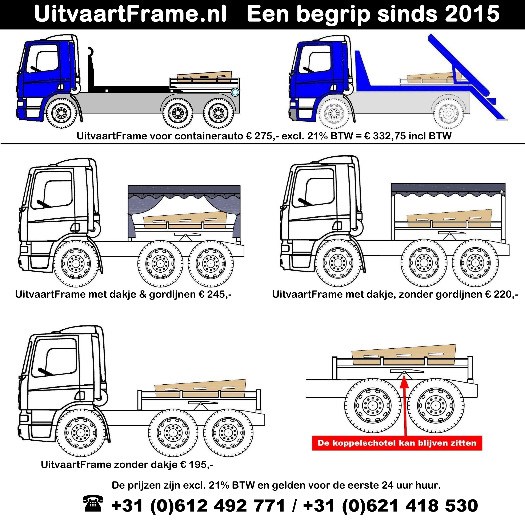 Ons UitvaartFrame is te huur voor uitvaart / crematie / ter aarde bestellen door middel van een truck, vrachtwagen, camion of landbouwwagen achter een tractor.