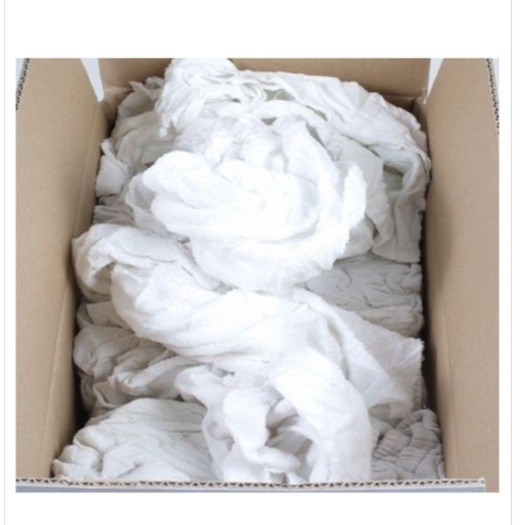 Grote doos met witte poetslappen.