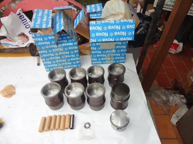 For sale pistons and liners for Alfa Romeo Montreal , original , new . Price on request . More parts available on request for this car . For information , details and pictures please contact me on e-mail : [email protected] , WhatsApp or call me :