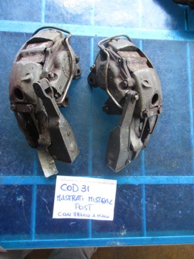 For sale rear brake calipers with handbrake for Maserati Mistral , original , used . Price on request . More parts available on request for this car . For information , details and pictures please contact me on e-mail , Whatsapp or call me :