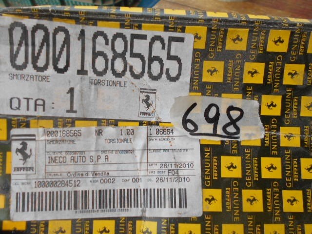 For sale crankshaft torsion damper for Ferrari 456 GT/GTA, 456 MGT/MGTA, 550 Barchetta, 550 Maranello, 575 SuperAmerica, 575M Maranello, 612 Scaglietti, 612 Sessanta , original , used . P/N 168565 . Price on request. More parts available on request for this car . For information, details and pictures please contact me on e-mail : [email protected] . WhatsApp or call me :