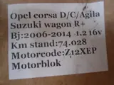 Opel Corsa D/C/Agila/Suzuki Wagon R+ 1.2 16V 2008 Model 2006/2014 Motorblok/Motorcode Z12XEP Km stand 74.028 bij ons op voorraad.