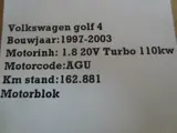VW Golf 1.8 20 V Turbo 110 kw 1997/2003 Motorblok code AGU KM stand 162.881 bij ons op voorraad.