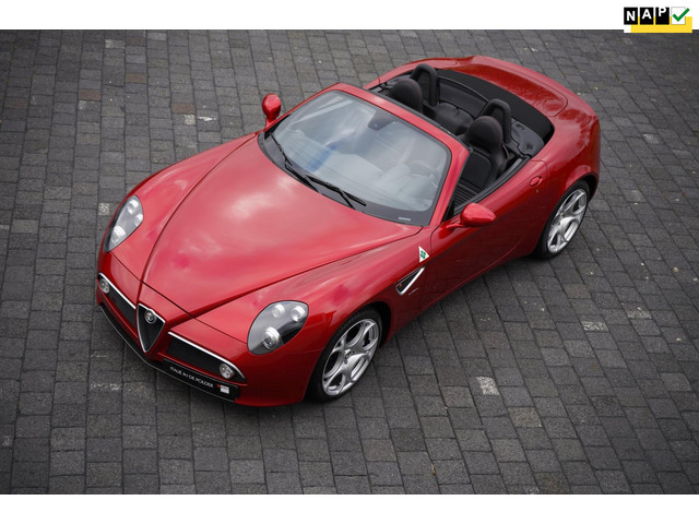 Mooier wordt het niet... Van de 8C Competizione Spider werden er slechts 329 gemaakt. Dit exemplaar is uitgevoerd in Rosso Competizione met zwart leder en rood contrasterende stiksels. Ze is voorzien van de QV klavers in de voorschermen, keramische remmen en de originele op maat gemaakte koffer, afdekhoes, alle documentatie en druppellader. Dealer onderhouden en zojuist onderhoud uitgevoerd bij Alfa Romeo. Dit exemplaar (nummer 150) werd in 2014 naar Nederland gehaald en verkocht aan een Nederlandse verzamelaar. Toen met 2.800 km gereden. Nu staat ze op 6.144 km. Kijk op www.samvandalen.com voor meer dan 70 foto's in hoge resolutie.