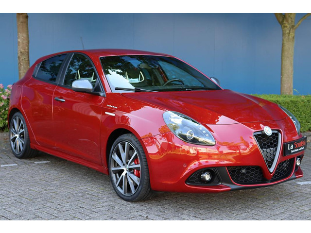 Waanzinnig mooie en zeer goed onderhouden Alfa Romeo Giulietta Quadrifoglio Verde in de kleur Competizione Rosso uit 2017!