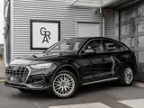 Een Audi Q5 Sportback 50 TFSie uit november 2021. De Q5 combineert het beste van 2 werelden met zijn hybride aandrijflijn van benzine en elektriciteit. Deze Audi Q5 Sportback is uitgevoerd in de kleur Briljantzwart gecombineerd met een chrome accenten wat de auto een chique uitstraling geeft.