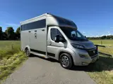 Prachtige premium 2-horses Hulshof Horsetruck op basis van nieuwe Fiat Ducato in Black Line edition. Voorzien van volledige 9-traps automaat en aluminium bodem. Zeer solide gebouwde RVS pro-safety/hengsten uitvoering met verschuifbaar tussenschot en openslaande tussendeuren. Het blijft hierdoor nog steeds mogelijk om het hoge RVS tussenschot eenvoudig te verschuiven naar de zijwand. Hierdoor ontstaat er een grote box wat ideaal is voor het vervoeren van merrie met veulen. Binnen hoogte van 235cm wat deze zeer geschikt maakt voor grote paarden. Luxe uitvoering met dubbel camera systeem met LCD scherm, airco, trekhaak, gespleten licht gewicht zijlader, vol lederen bekleding, LED dag/nacht verlichting binnen, ventilatie in paardengedeelte, etc. etc.