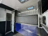 Mogelijkheid om het hoge RVS tussenschot eenvoudig te verschuiven naar de zijwand. Hierdoor ontstaat er een grote box wat ideaal is voor het vervoeren van merrie met veulen. Binnen hoogte van 235cm wat deze zeer geschikt maakt voor grote paarden. Luxe...