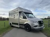 Zeer unieke 2-paards paardenauto op basis van Mercedes Sprinter met 315 met lage instap en voorwiel aandrijving, 9-traps volledige automaat en in AMG-Line uitvoering! Nergens in Europa voorradig, betreft jong gebruikt voertuig in bijna nieuwstaat. Voorzien van 18" LM sportvelgen, LED performance koplampen zonnespoiler, AMG interieur, 2-kleurig AMG kleur stelling met parel effect. Zeer solide gebouwde RVS pro-safety/hengsten uitvoering met verschuifbaar tussenschot en openslaande tussendeuren. Het blijft hierdoor nog steeds mogelijk om het hoge RVS tussenschot eenvoudig te verschuiven naar de zijwand. Hierdoor ontstaat er een grote box wat ideaal is voor het vervoeren van merrie met veulen. Binnen hoogte van 235cm wat deze zeer geschikt maakt voor grote paarden. Luxe uitvoering met dubbel camera...