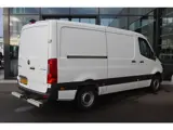 De Sprinter is o.a. voorzien van airco, 7" MBUX multimediasysteem, Apple Carplay/AndroidPLay, achteruitrijcamera, parkeersensoren voor en achter, cruise control, trekhaak met 3.500 kg trekgewicht, achter-opstap en volledige laadruimte betimmering.