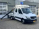 Een zeer nette Mercedes Sprinter 514 CDI 140pk Dubbele cabine Hiab Laadkraan 018T Trekhaak 3500kg trekgewicht Airco 6 persoons uitvoering Open laadbak Pick-up Euro 6 Verkeersbord Actiebord Pijlenbord Bakwagen P-up Tachograaf 1e eigenaar ex gemeente