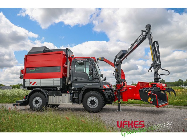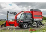 Type C uitblaaspijp hydraulisch; draaien, op/neer & strooiklep verstelling Unimog montage en geïntegreerd kraanplateau met hydraulische steunpoten Geschikt voor minimaal Unimog U427