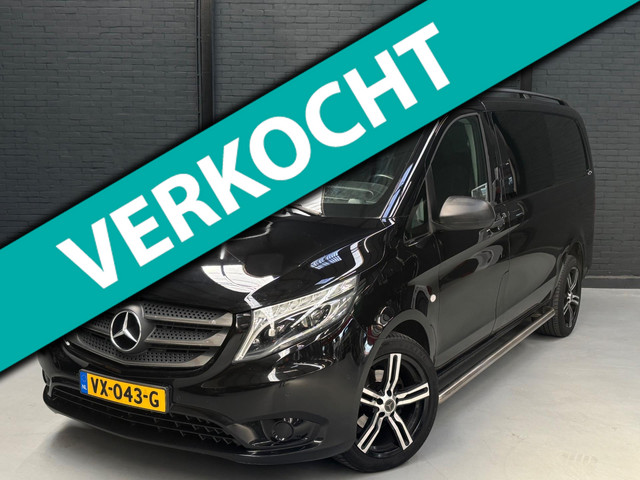 Keurige dubbel cabine Mercedes-Benz Vito in de oude Lengte 2 uitvoering, voorzien van de 170-pk sterke dieselmotor, gekoppeld aan een 7-traps automaat. Deze bus is onder andere voorzien van automatische airconditioning (climate control), achterklep, cruise control, enkele bijrijdersstoel voor (i.p.v. dubbele zit), LED verlichting, lichtmetalen velgen 18 inch, schuifdeur (rechts), scheidingswand met ruit, sidebars, en een trekhaak.