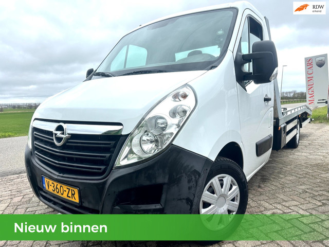 Super mooie en nette witte Opel Movano 2.3 CDTI L3 3-Zits 6Bak oprijwagen/autotransporter met NAP en Airco, Boordcomputer, Mistlampen, Cruise control, Elek.ramen, Lier met afstandbediening, veren met lucht drukgas,