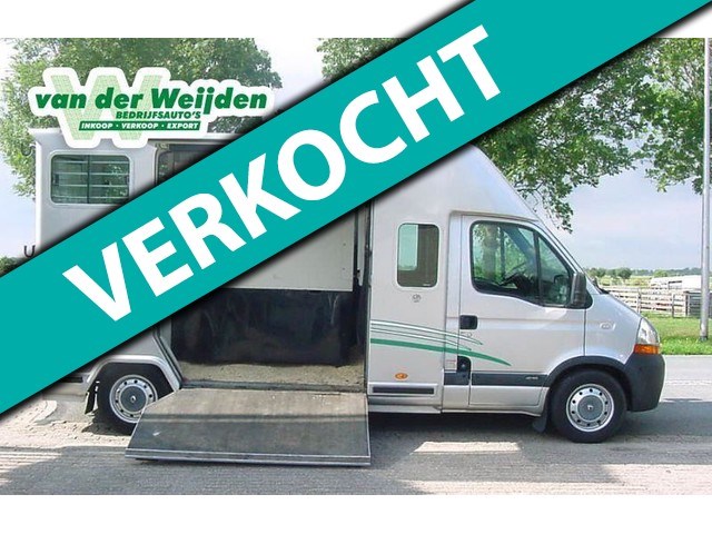 Master 2.5D 2-Paards "Barbot' Paardenauto, Dubbele Cabine, 2.540 kg., trekhaak met trekkracht van 2.000 kg., 107 Kw., 146 PK., laadvermogen 960 kg., arm- en hoofdsteuntje bij bestuurders- en passagiersstoel, 6 versnellingen, airco, radio/cd, airbag bestuurder, elektrische ramen, elektrische buitenspiegels, toerenteller, raampje vanuit de cabine naar de laadruimte, centrale vergrendeling met afstandsbediening, 3e remlicht, sulky supports, De motor is bij 250.000 km. gereviseerd!!!, Prijs is INCLUSIEF de b.t.w.